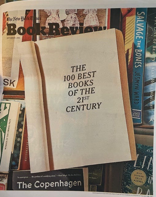 We all love to count. It starts as little kids and never leaves us. My little granddaughter delighted in playing hide and seek where she got to count to 20 (sometimes she jumped from 14 to 20!) This week, I was going to discuss “You Are Here,“by David Nichols, and I promise I will get to it next week, but I couldn’t resist the New York Times issue today on the 100 best books of the 21st century.